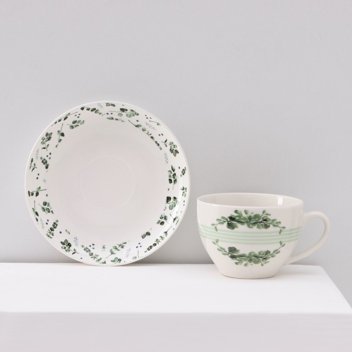 Сервиз фарфоровый чайный Доляна «Эвкалипт», 12 предметов: 6 чашек 280 мл, 6 блюдец d=15 см