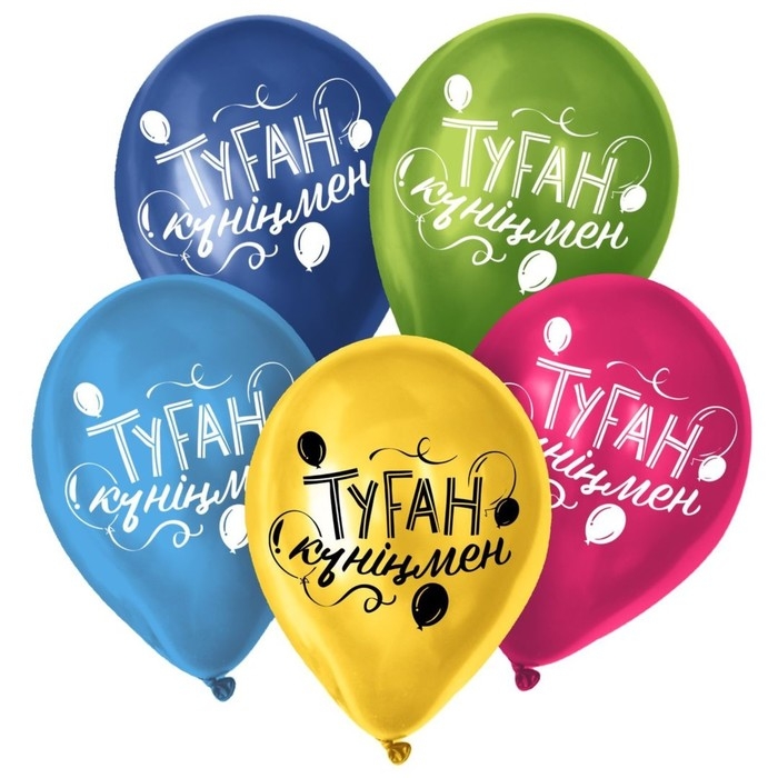 Воздушный шар латексный 12" «С днём рождения», казахский язык, 50 шт.