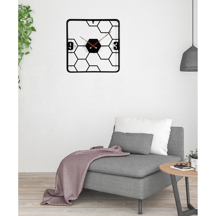 Часы настенные интерьерные большие, Лофт, "Соты", бесшумные, 58 х 58 см