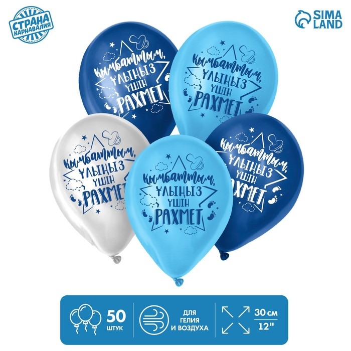 Воздушный шар латексный 12" «Спасибо за сына», казахский язык, 50 шт.