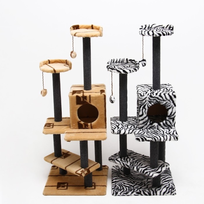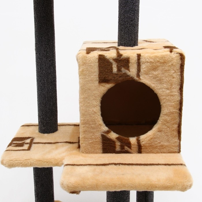Прочный каркас, обтянутый мягким ковролином, гарантирует долговечность и устойчивость к когтям, а джутовые столбики с когтеточкой помогут сохранить мебель в первозданном виде. Закрытый домик на нижнем уровне создаст уютное убежище, где кошка сможет спрятаться от суеты, а удобные площадки на разных уровнях обеспечат идеальное место для игр и наблюдения.
