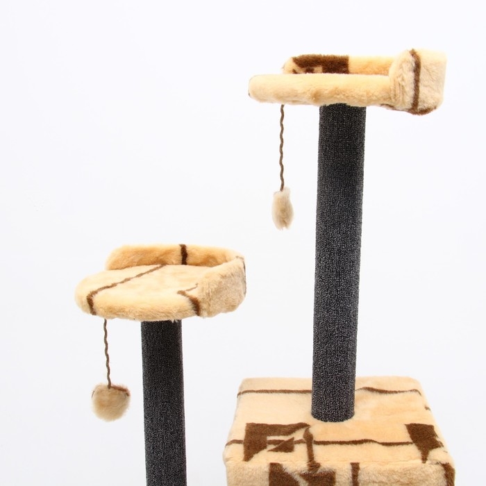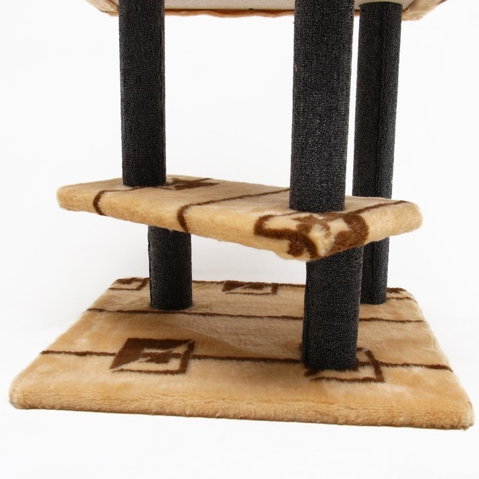 Домик для кошек с когтеточкой, с двумя полками, джут, 37 х 37 х 111 см, бежевый