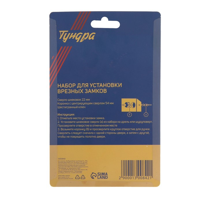 Набор для установки врезных замков ТУНДРА, сверло шнековое 22 мм, коронка 54 мм