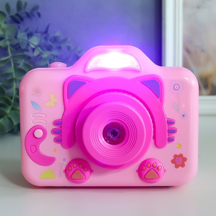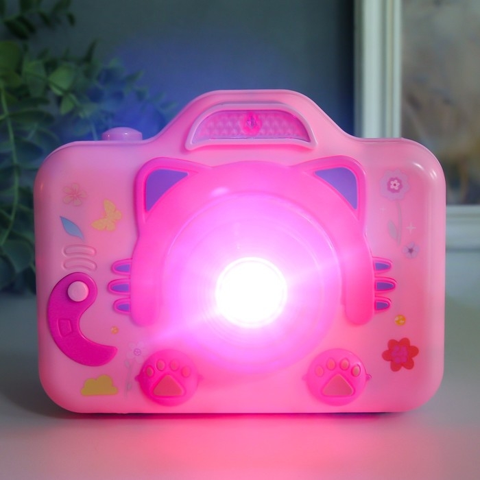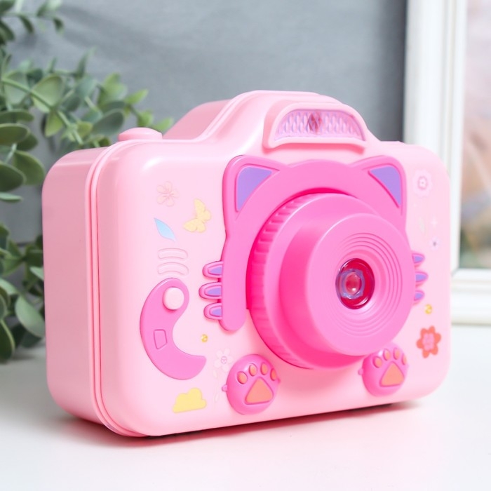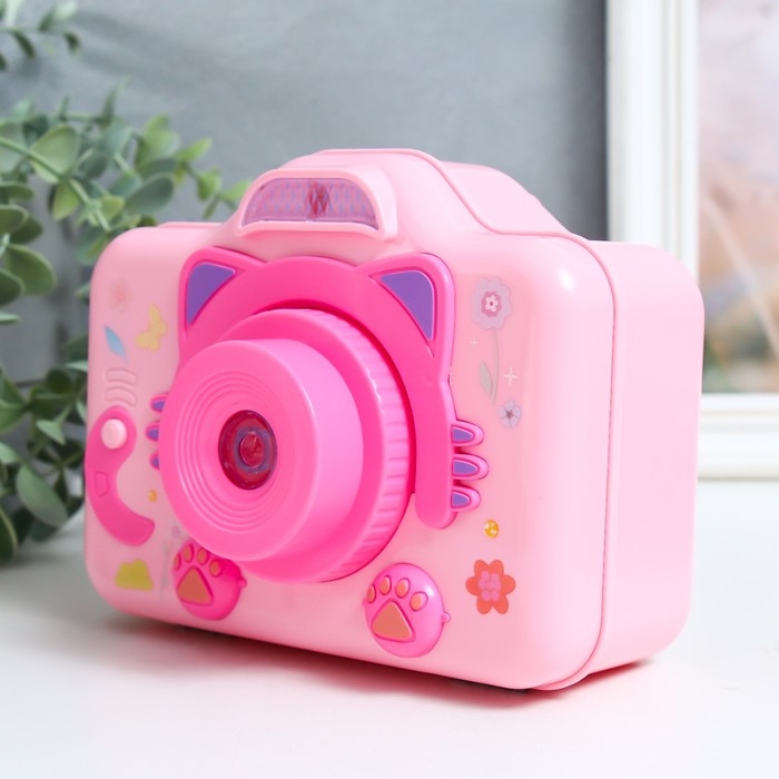 Шкатулка музыкальная механическая свет "Фотоаппарат - кошечка" розовый 10,5х12,5х16 см
