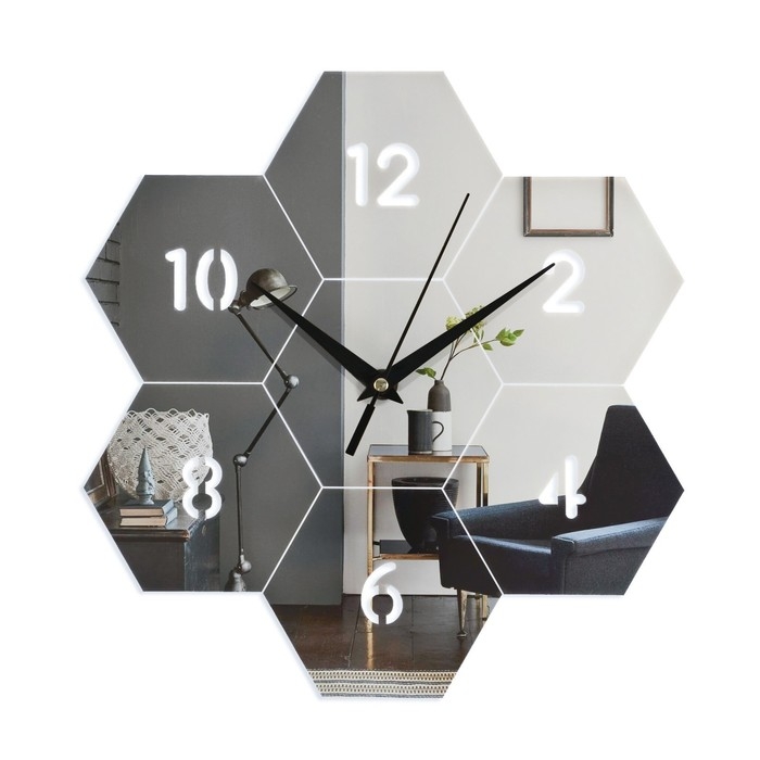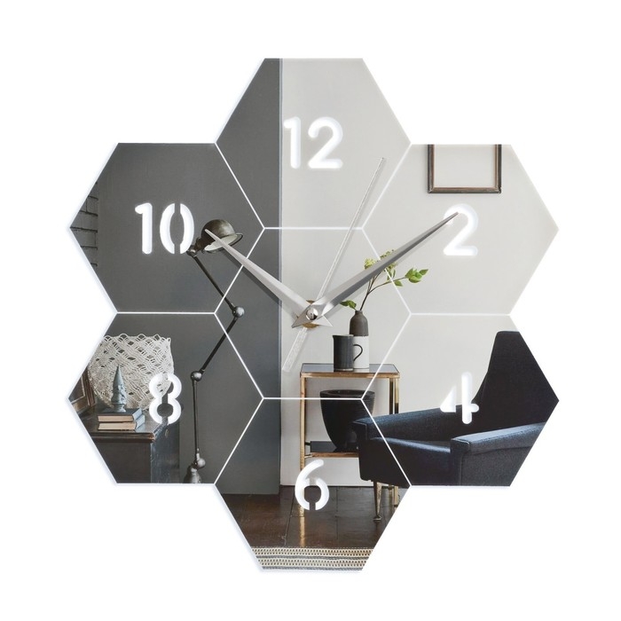 Часы настенные интерьерные, 3d "Соты", бесшумные, наклейка, большие, 27 х 26 см