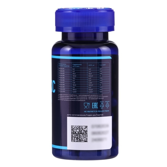 Комплекс витаминов группы В, необходимых для нормальной работы нервной системы и мозга, выработки энергии и нормализации обмена веществ.