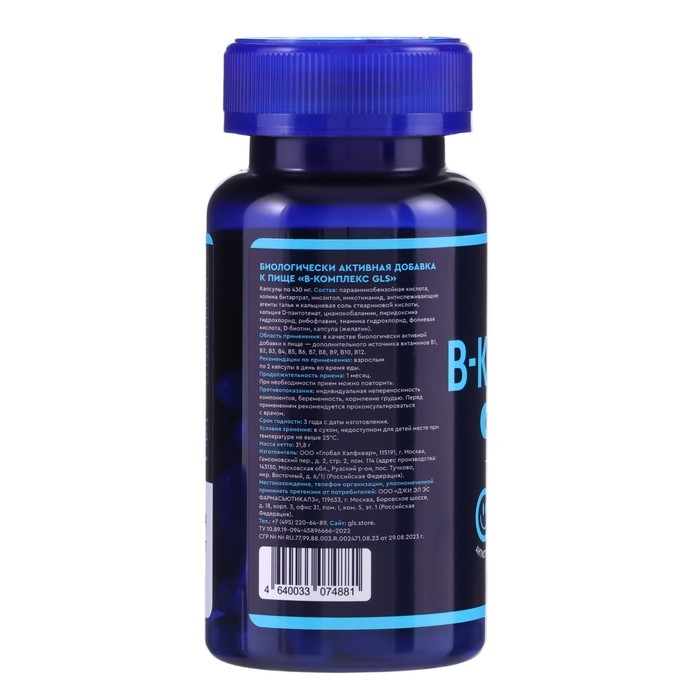 B-комплекс GLS для мозга и нервной системы, 60 капсул по 400 мг