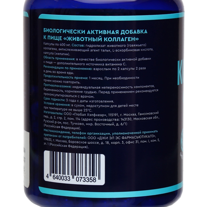 Животный коллаген GLS для суставов и кожи, 120 капсул по 400 мг