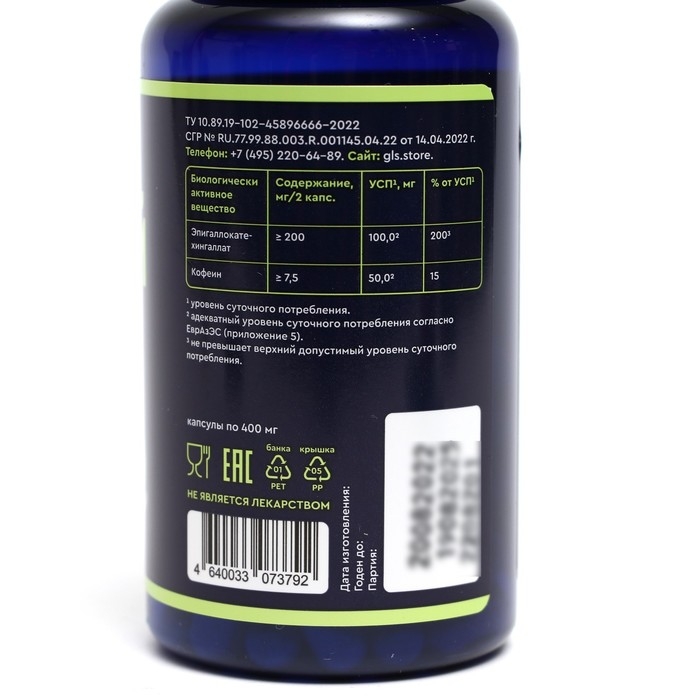 Показания: в качестве биологически активной добавки к пище – источника эпигаллокатехингаллата и кофеина.