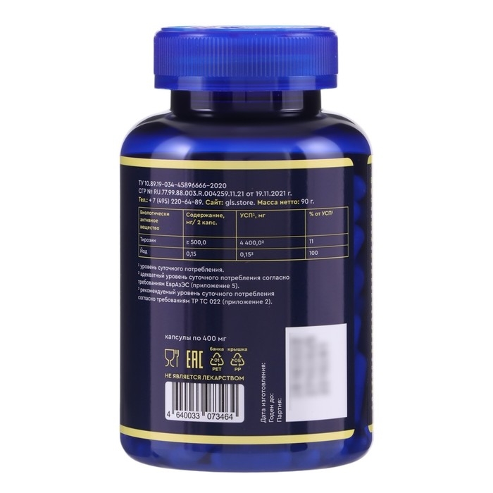 Тирозин, для похудения, 500 GLS, 180 капсул по 400 мг
