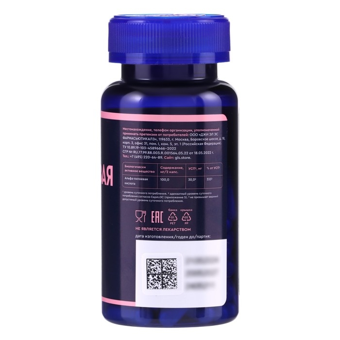 Альфа-липоевая кислота GLS для похудения и детокса, 60 капсул по 400 мг