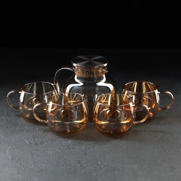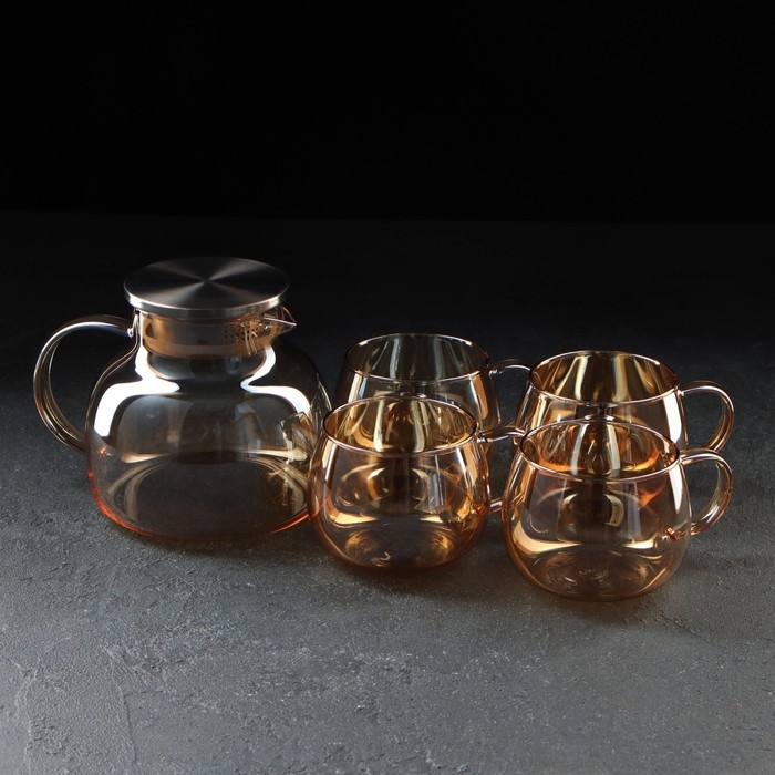Набор для напитков из стекла Magistro «Голден», 5 предметов: кувшин 1 л, 4 кружки 350 мл, цвет золотой