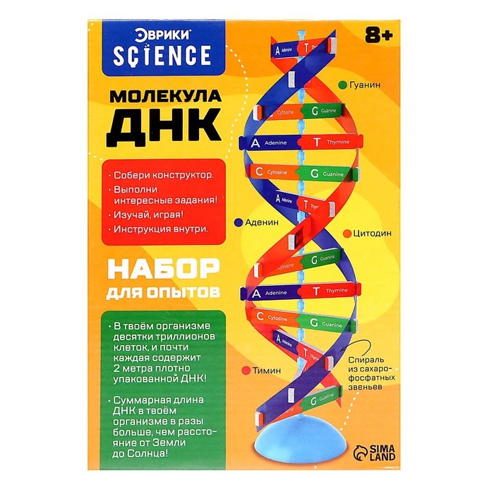 Набор для опытов «Молекула ДНК» позволит ребёнку создать модель ДНК и узнать о её устройстве и функциях. Набор содержит все необходимые компоненты для создания модели, а также инструкцию для сборки.