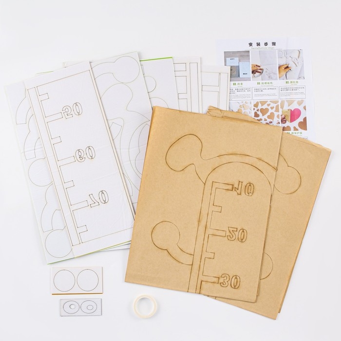 - Ростомер легко крепится на двусторонний скотч, который идёт в комплекте