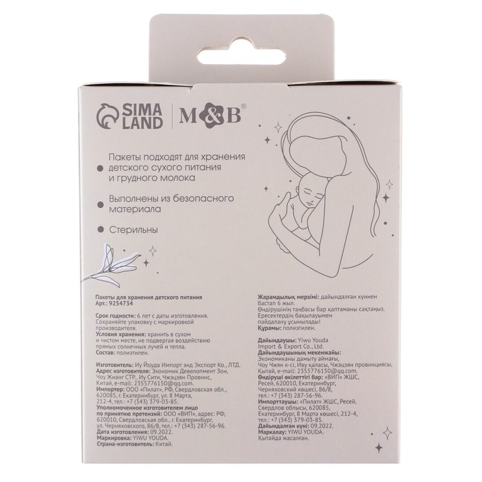 Пакеты для хранения детского питания, 100 мл., набор 30 шт., Mum&Baby
