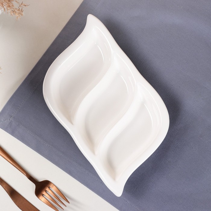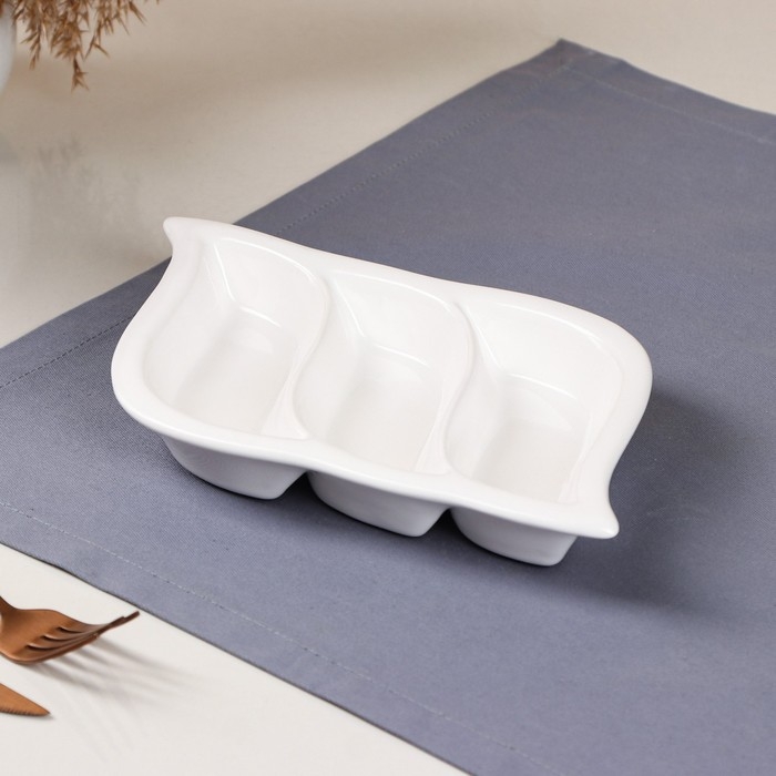 Соусник керамический «Тройная», белый, 1 сорт, Иран