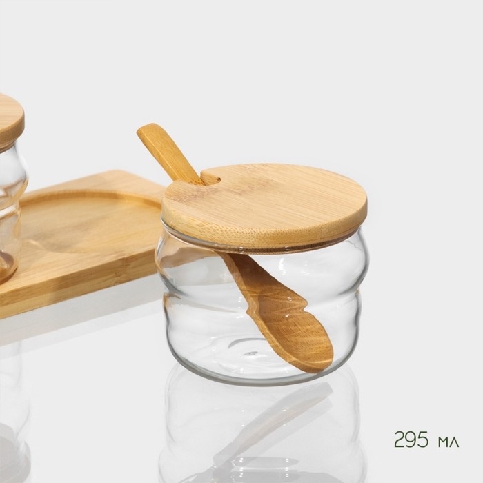 Банки для хранения сыпучих продуктов с ложками на бамбуковой подставке BellaTenero «Эко. Грани», 3 предмета: 295 мл, 10×13 см