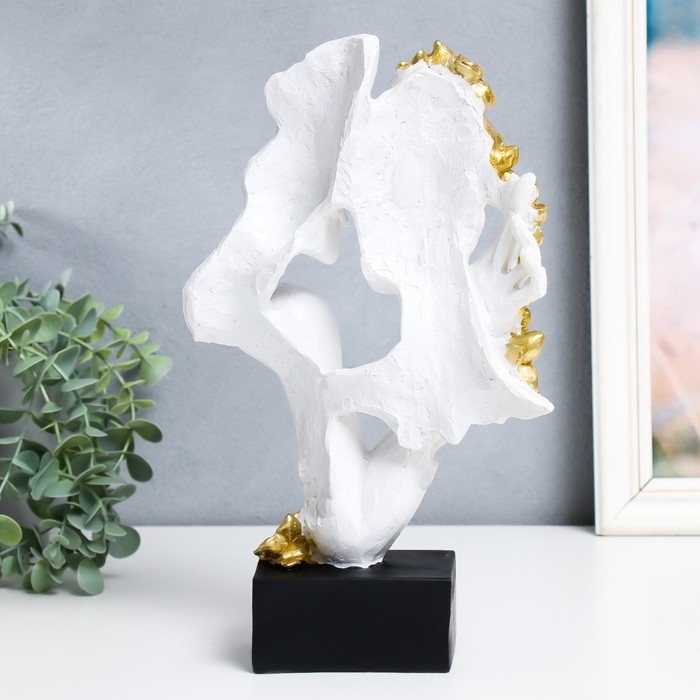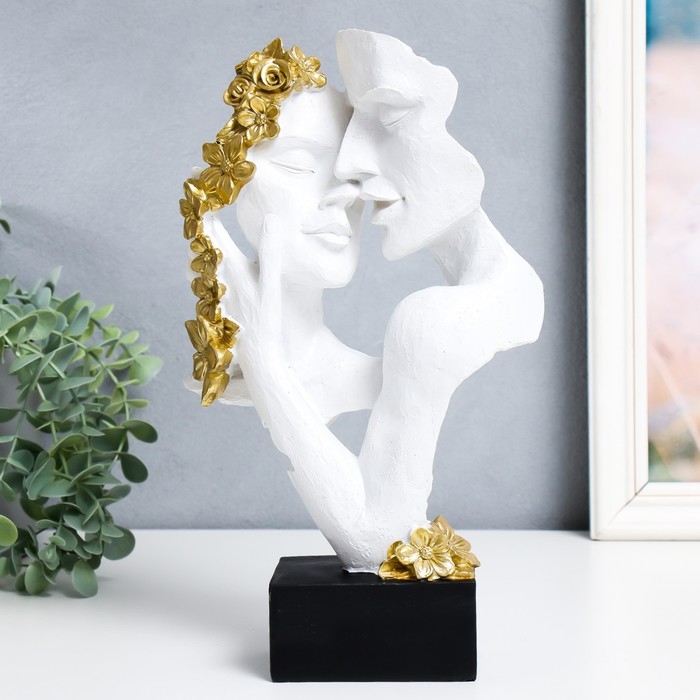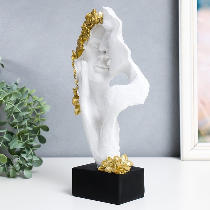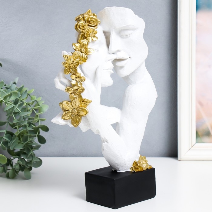 Сувенир полистоун бюст "Пара - Страсть. Цветы" белый с золотом 6,5х18,5х30,5 см