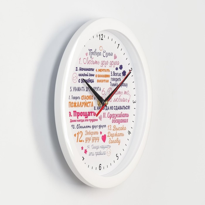 Часы настенные, d-28 см, интерьерные, "Правила семьи", бесшумные
