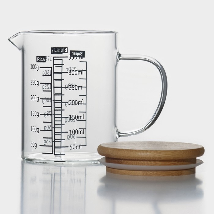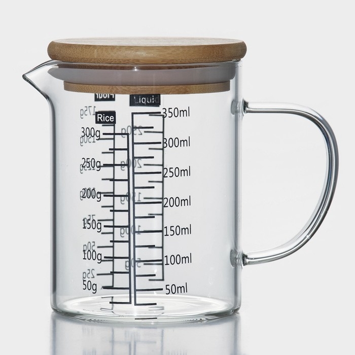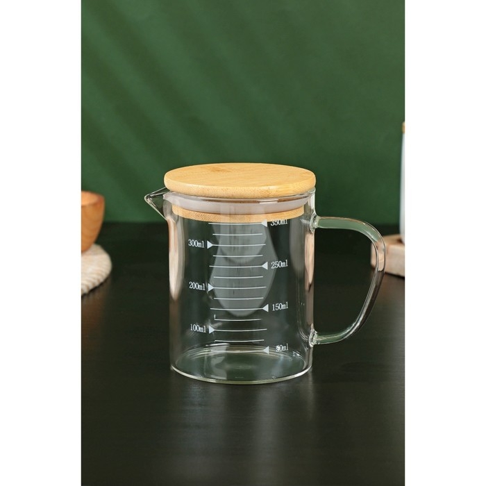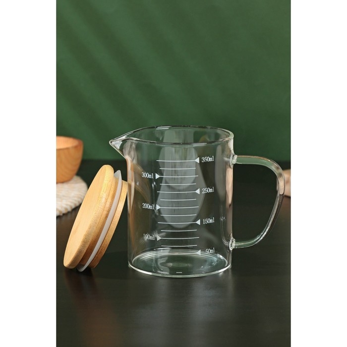 Кувшин для воды стеклянный мерный с бамбуковой крышкой BellaTenero «Эко», 350 мл, 12,5×7,5×11,5 см, мерная шкала цвет МИКС