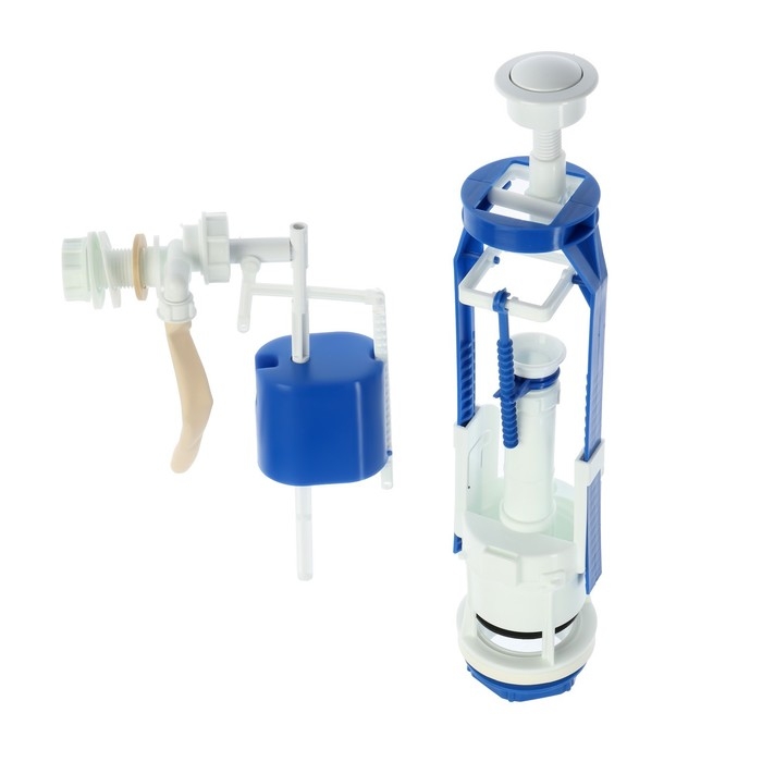 Арматура для смывных бачков "РБМ" АС-16.2, с боковым плоским донным клапаном, кнопка белая