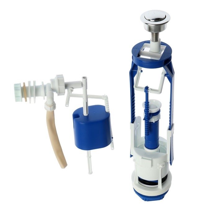 Арматура для смывных бачков "РБМ" АС-16.2М, с боковым плоским донным клапаном, кнопка хром