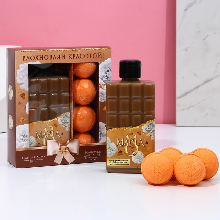 Подарочный набор косметики «Вдохновляй красотой!», гель для душа 300 мл и бомбочки для ванны 4 шт, ЧИСТОЕ СЧАСТЬЕ