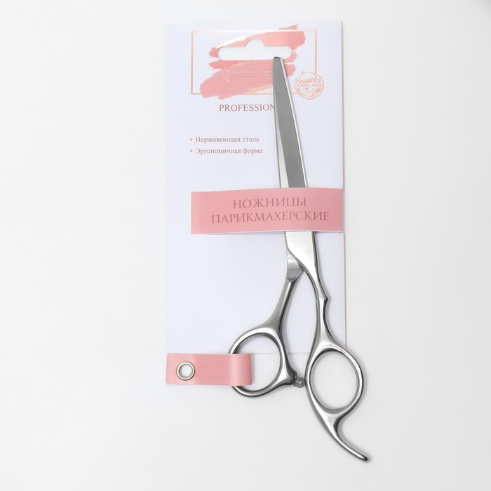 Ножницы парикмахерские с упором, загнутые кольца, лезвие — 5,5 см, цвет серебристый