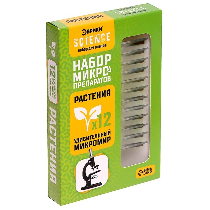 Набор микропрепаратов — это 12 слайдов с готовыми образцами для исследования под микроскопом.
