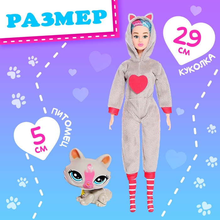 Ваша принцесса любит играть в куклы и ухаживать за животными? Тогда набор с куклой и питомцем точно порадует её! Ребёнок сможет придумать множество ярких сюжетов с кошечкой. Набор упакован в красочную коробочку, поэтому его можно вручить в подарок даже без дополнительной праздничной упаковки.