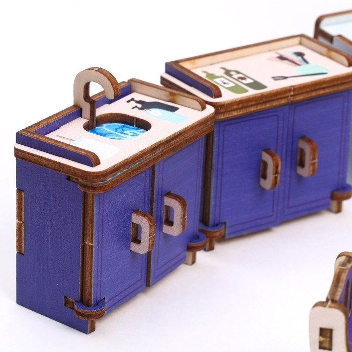 Создайте миниатюру настоящей комнаты из деревянных деталей. Предметы мебели сделаны из экологически натурального и безопасного материала. Изделия выглядят очень реалистично и идеально подойдут как для игр малыша, так и в качестве декора для детской.
