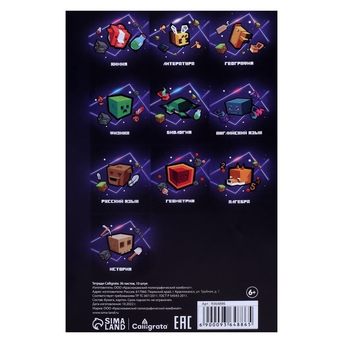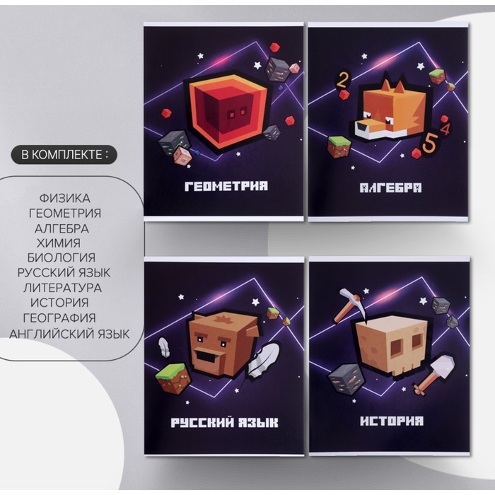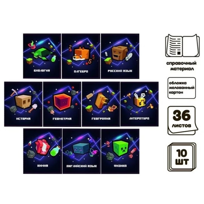 Комплект предметных тетрадей 36 листов "Пиксели", 10 предметов со справочным материалом, обложка мелованный картон, блок офсет