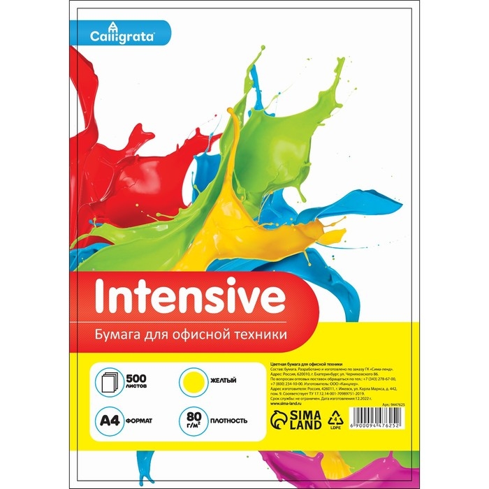 Бумага цветная А4 500л Calligrata Интенсив Желтый 80г/м2