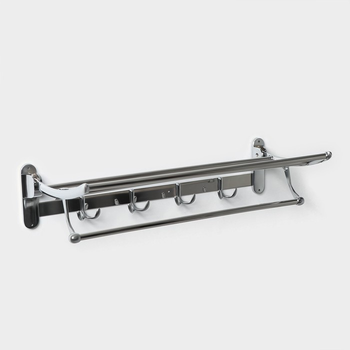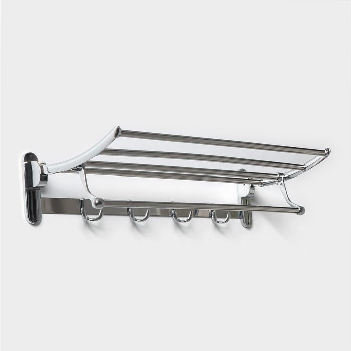 Полка откидная с держателем полотенец, 4 крючка, 58×25×13 см, цвет хром
