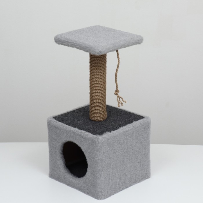 Домик для животных, с когтеточкой и полкой, джут, 32 х 32 х 64 см, серый