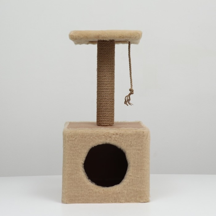Домик для животных, с когтеточкой и полкой, джут, 32 х 32 х 64, бежевый