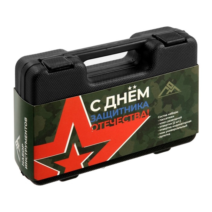 Набор инструментов в кейсе ЛОМ "23 ФЕВРАЛЯ", в подарочной упаковке, 7 предметов