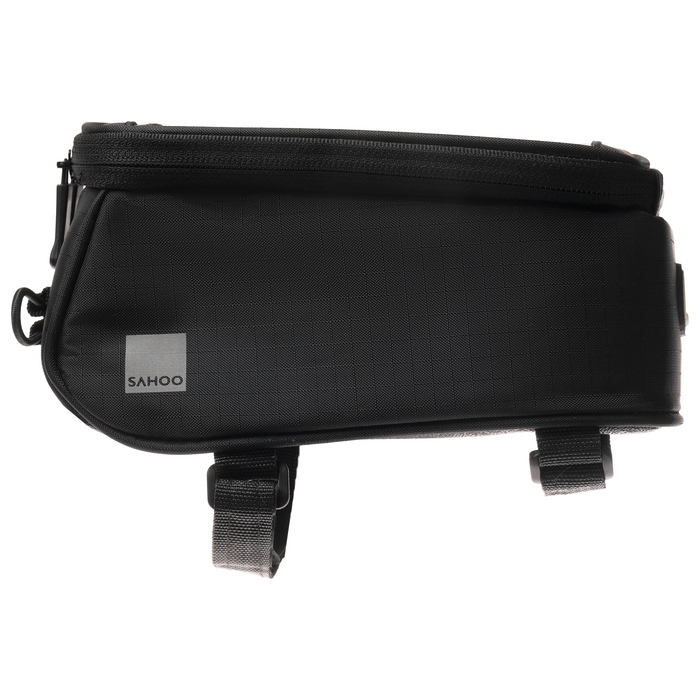 Велосумка крепиться на раму велосипеда. Имеет один отсек на молнии и дополнительный отсек под телефон с прозрачной крышкой.