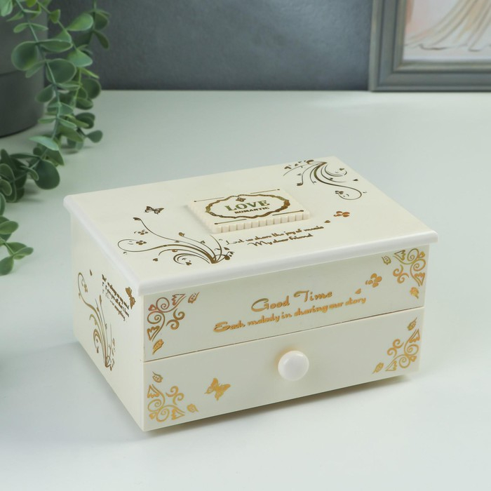 Шкатулка музыкальная механическая "Белый комод с золотым узором" 15,5х10,7х8,5 см