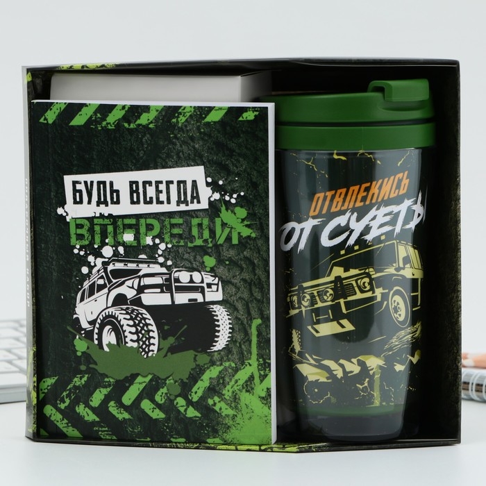 Подарочный набор: ежедневник А6, 80 л. и термостакан 250 мл "Будь всегда впереди"