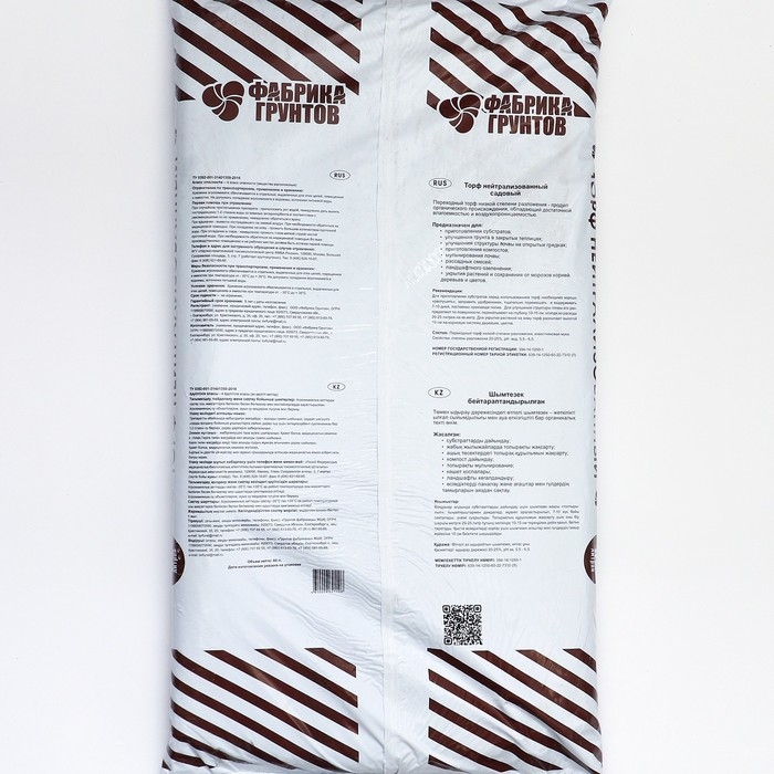 Состав: Переходный торф низкой степени разложения, известняковая мука. Свойства: степень разложения 20-25%, рН вод. 5,5 - 6,5.