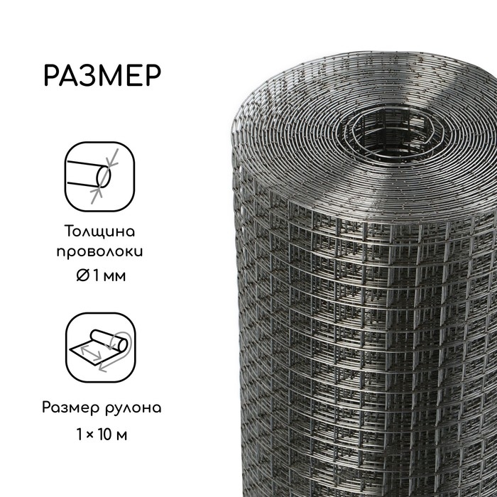 Сетка оцинкованная сварная 1 х 10 м, ячейка 10 х 10 мм, d=0,6 мм, металл Greengo