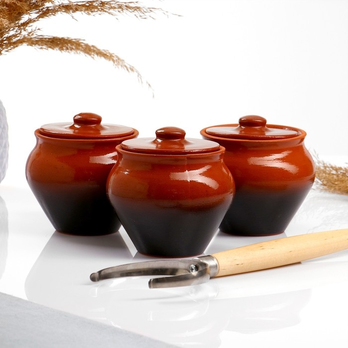 Набор "Вятская керамика Трио" 0,5лх3шт + ухват, тонированный