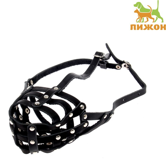 Намордник кожаный сетчатый с перемычкой №4,ротвейлер(длина по носу 9 см, обхват морды 34 см),