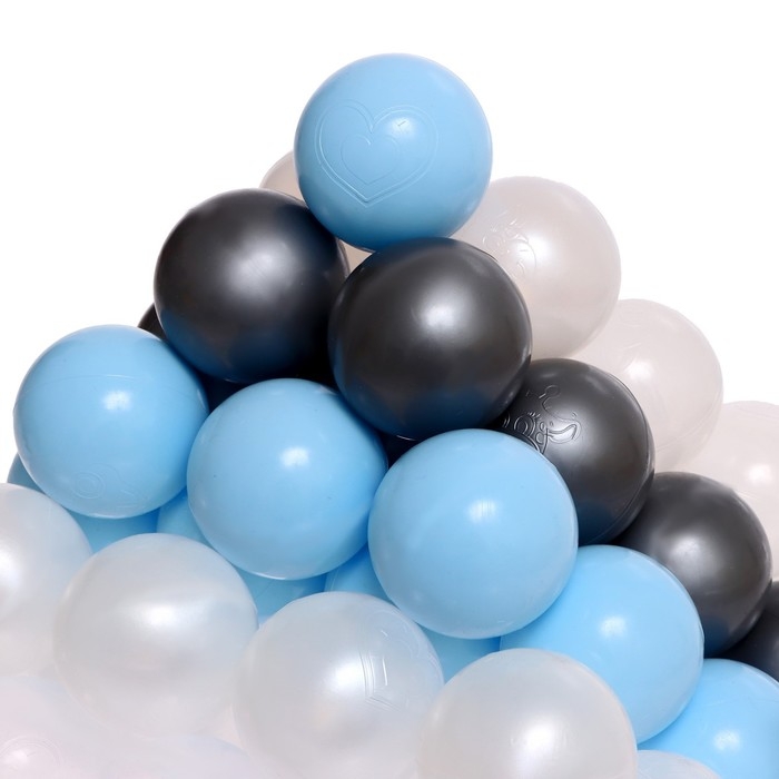 Набор шаров 100 штук, цвета: светло-голубой, серебро, белый перламутр, прозрачный, диаметр шара — 7,5 см