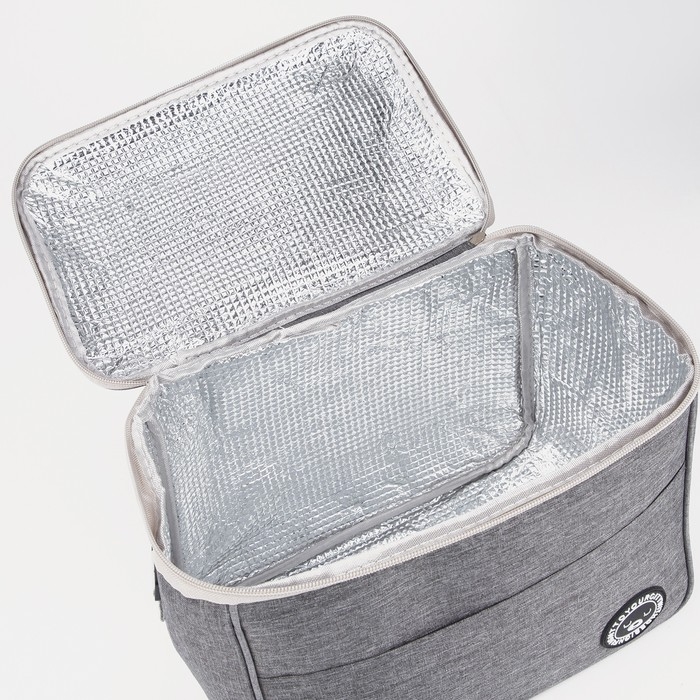 Термосумка на молнии 9 л, длинный ремень, цвет серый