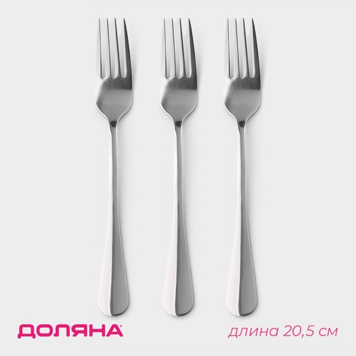 Набор вилок столовых из нержавеющей стали Доляна, h=20,5 см, толщина 2,2 мм, 410 сталь, 3 шт, цвет серебряный