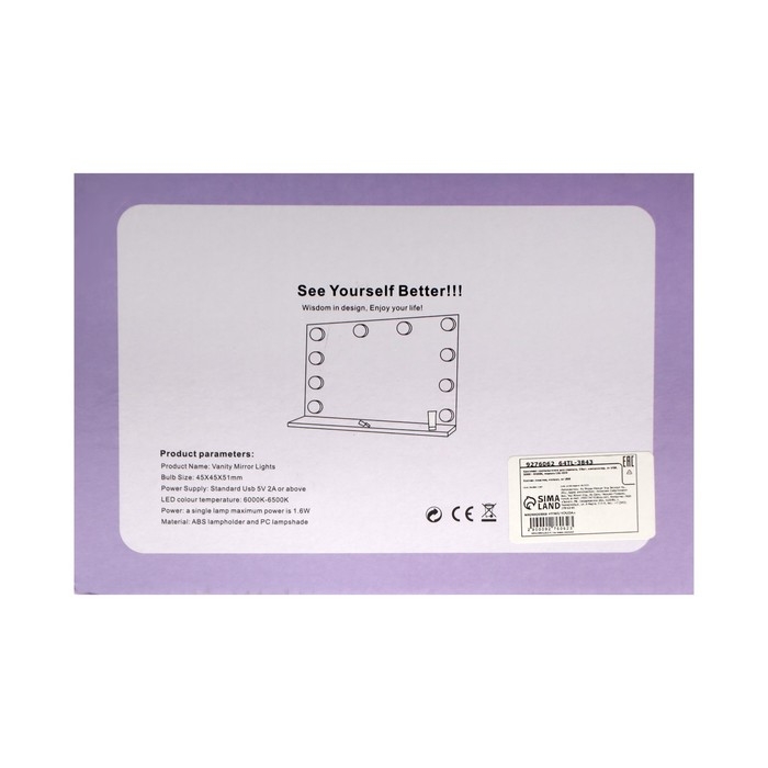 Комплект светодиодных ламп для подсветки зеркала, 10шт, контроллер, от USB, 3000 - 6500К