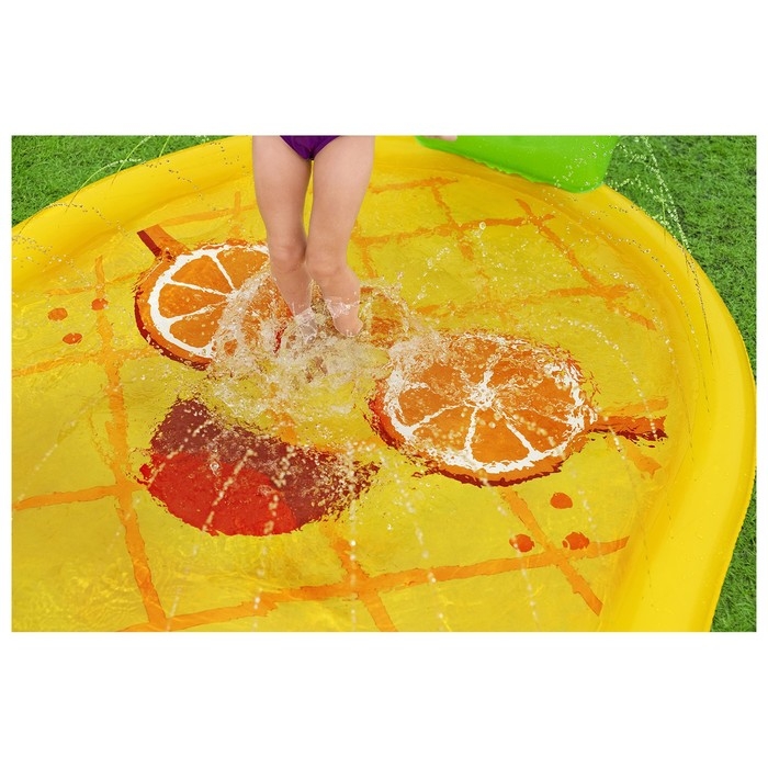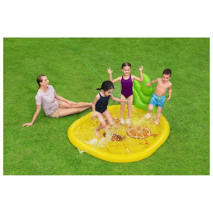 Бассейн представляет собой коврик с надувными бортами. Изделие оснащено разбрызгивателем с подключением к садовому шлангу. Бассейн подарит малышам прохладу в жаркий летний день.