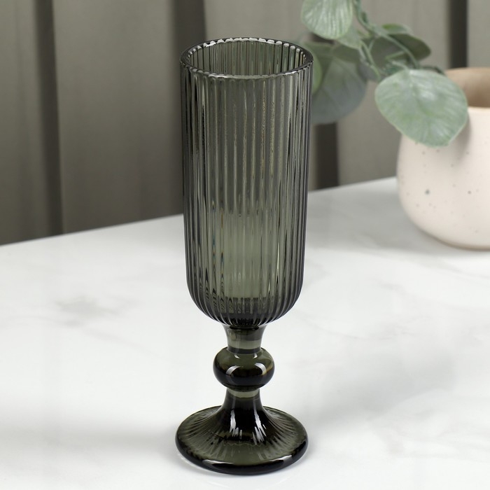 Бокал для шампанского стеклянный Magistro «Грани», 150 мл, 5,5×18,5 см, цвет графит